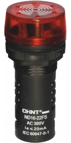 - Сигнализатор звуковой ND16-22FS (LED) d22мм красный AC220B CHINT (593207)